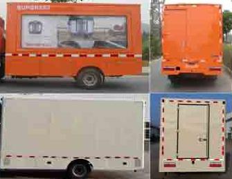 该车是用于广告宣传和科普宣传的专用车辆。随底盘选装驾驶室。两侧均可选装: LED升降或者不带升降屏, 滚轴灯箱,条屏, 活动舞台或者封闭; 后部可选装:通风口,后开门,或者灯箱或者LED屏;前部可选装通风口或LED屏升降或者不升降屏。左右亦可选装侧展或者封闭。后部以及侧面防护为裙板结构,侧面离地高度(mm):420,后部离地高度(mm):450;ABS控制器型号及生产企业:CM4XL-4S/4M,广州科密汽车电子控制技术股份有限公司。 |