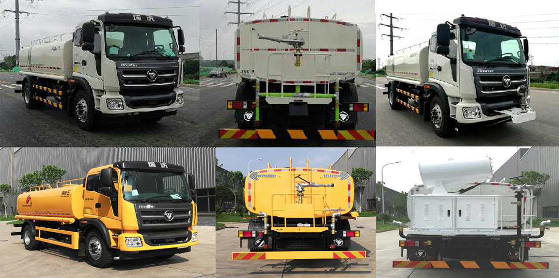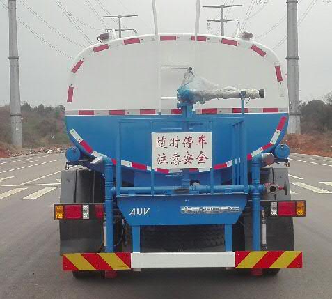该车装备有罐体,水泵,管道系统等,用于清洗路面,对路面喷洒水降尘等作用.车辆配置AB两种罐体状态,配置A罐体时:有效容积11.6立方米,罐体外形尺寸(长轴×短轴×长度)(mm):2180×1400×4900.介质名称:水,介质密度:1000千克/立方米;配置B罐体时:有效容积10.9立方米,罐体外形尺寸(长轴×短轴×长度)(mm):2300×1270×4900.介质名称:水,介质密度:1000千克/立方米;侧后防护装置材料为Q235A,采用螺栓与车架链接,后防护装置断面尺寸:150×50mm,后防护离地高度435mm;选装前置自动水炮,前伸580mm;具有卫星定位功能的行驶记录仪.ABS型号为CM4XL-4S/4M,生产厂家为广州瑞立科密汽车电子股份有限公司,随底盘选装新前围及后视镜,选装后部灯具. |