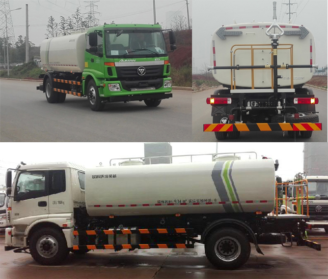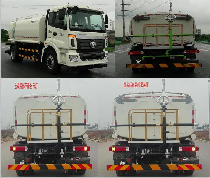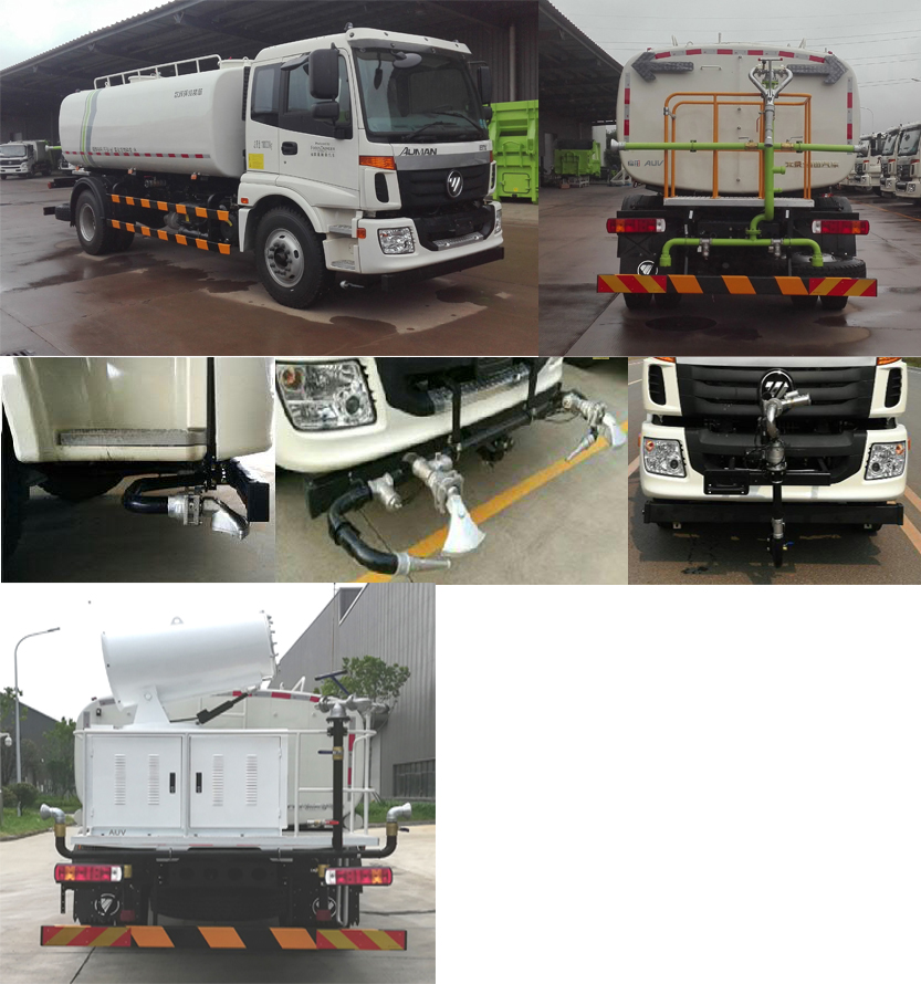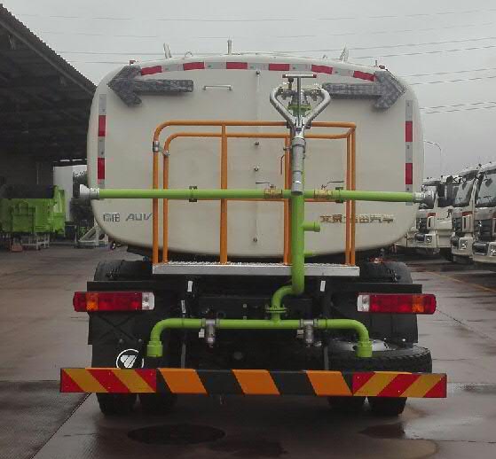 该车配置A,B两种罐体,配置A罐体时:有效容积10.5立方米,罐体外形尺寸(长轴×短轴×长度)(mm):2400×1450×4500.介质名称:水,介质密度:1000千克/立方米;配置B罐体时:有效容积10.06立方米,罐体外形尺寸(长轴×短轴×长度)(mm):2390×1400×4500.介质名称:水,介质密度:1000千克/立方米;后防护装置材料为Q235A,后防护装置断面尺寸:150×50mm,后防护离地高度:430mm;与车辆的连接方式为螺栓连接.该车安装具有卫星定位功能的行驶记录仪.ABS控制器型号/生产企业对应关系:3550X-1010/东风电子科技股份有限公司.选装工具箱,选装不带指示灯,选装喷雾装置.选装前喷淋装置(前伸600mm).随底盘选装前围.选装照片1:为选装外观;选装照片2:为再次选装外观及后部装置;选装照片3:为再次选装外观及前部喷淋装置+前自动水炮. |