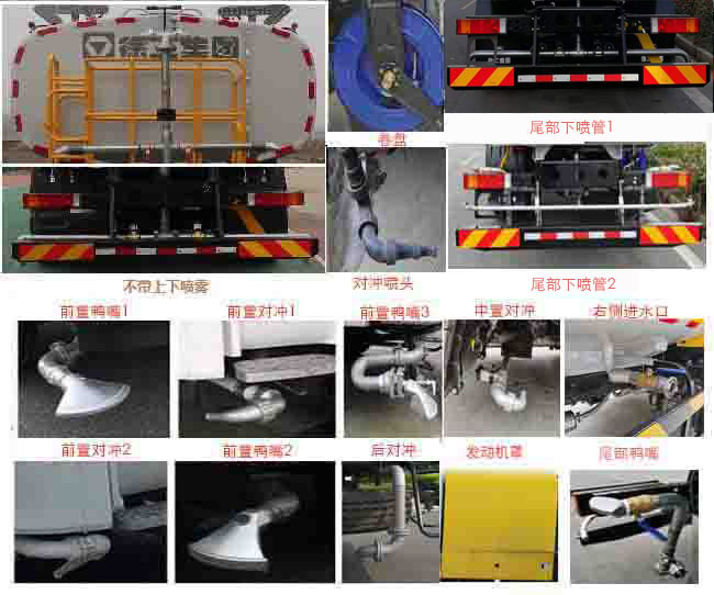 备注 | 该车主要专用装置为水罐、水路及作业装置,用于城镇环境清洗及清洁作业,仅选用4500mm、4700mm轴距底盘;罐体有效容积9.35立方米,罐体外形尺寸(长轴×短轴×长度)(mm):2440×1470×3795,装运介质为水,介质密度为1000Kg/m3,选装对应说明如下:1、车头选装高压喷水架装置时,外形尺寸长×高(mm):8975×2950,前伸965mm,接近角6°,后悬尺寸1880mm(对应4700mm轴距)2080mm(对应4500mm轴距),离去角11°,整备质量8900kg;2、车头选装前自动水炮装置时,外形尺寸长×高(mm):8610×2950,前伸600mm,接近角12°,后悬尺寸1880mm(对应4700mm轴距)2080mm(对应4500mm轴距),离去角11°,整备质量8600kg;3、选装车头无工作装置形式时,外形尺寸长×高(mm):8010×2950,接近角16°,后悬尺寸1880mm(对应4700mm轴距)2080mm(对应4500mm轴距),离去角11°,整备质量8600kg;4、车后选装后雾炮(配加宽工作平台)车头无选装时,外形尺寸长×高(mm):8435×3060,接近角9°,后悬尺寸2305mm(对应4700mm轴距)2505mm(对应4500mm轴距),离去角9°,整备质量8900kg;5、车头选装前滚刷装置时,外形尺寸长×高(mm):8975×2950,前伸965mm,接近角6°,后悬尺寸1880mm(对应4700mm轴距)2080mm(对应4500mm轴距),离去角11°,整备质量8900kg;随底盘选装驾驶室、选装鸭嘴、对冲喷头、卷盘、顶部绿化浇灌、不带尾部箭头灯、上下喷雾装置、选装尾部自吸、选装前喷水架外观、中置对冲、尾部下喷管,该系列选装对于整车尺寸、重量变化可忽略不计;侧面防护装置材质为Q235B,连接方式为螺栓连接;后防护装置材质为Q235B,连接方式为焊接;后部防护装置的断面尺寸为180×60mm,离地高度为400mm;随底盘装ABS.ABS型号/生产厂家:3631010-C2000/东科克诺尔商用车制动系统(十堰)有限公司,ABS 8/东科克诺尔商用车制动系统(十堰)有限公司, 4460046450/威伯科汽车控制系统(中国)有限公司.随底盘装行驶记录仪. |