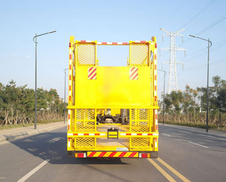 该车主要用于车辆的转运运输。该车仅采用轴距为7200毫米,装配4HK1-TC50型发动机的二类底盘进行改装。该底盘装ABS,ABS及控制器型号为:APG3550500H1,生产厂家为:浙江亚太机电股份有限公司;安装具有卫星定位功能的行驶记录仪。侧面防护装置材料:Q235,连接方式:焊接;后下部防护装置与专用上装部分焊接,专用装置离地高度385毫米。4HK1-TC50型发动机油耗对应值为31.33L/100km。该底盘可选装前盘式制动器。 |
