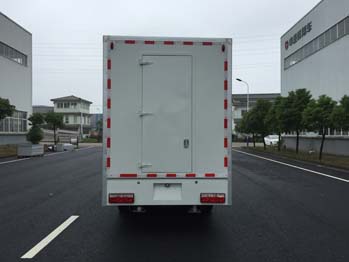 该车是进行宣传推广的专用车辆,左右后三侧均可选装LED屏,选装LED屏时整备质量4360kg,前后部选装百叶窗,屏外可选装防护玻璃,左右两侧均可选装卷轴装置或广告灯箱,选装两侧打开车厢时,整备质量4060kg;随底盘选装前面罩以及前雾灯,新造型前面罩;防护为整体裙边结构,后裙边下缘离地高度为380mm;ABS厂家及型号:襄阳东风隆诚机械有限责任公司/ABS/ASR-24V-4S/4M。 |
