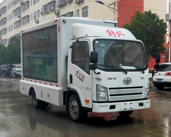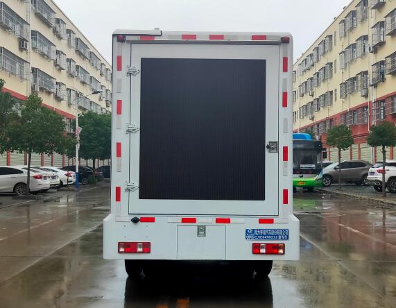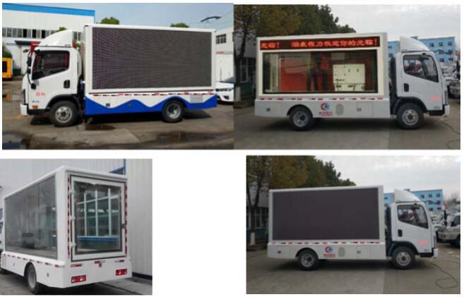 该车是用于广告宣传的专用车辆.专用装置为LED显示屏.侧后防护采用裙板结构代替,后部裙板离地高为450mm..;两侧,尾门均可选装LED屏,滚轴玻璃,条屏,封板等结构.ABS生产厂家/型号:1.浙江万安科技股份有限公司/VIE ABS-II.2.广州瑞立科密汽车电子股份有限公司/CM4YL. |