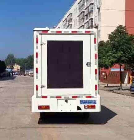 该车是用于广告宣传的专用车辆,专用装置为LED显示屏;整车长/轴距/后悬对应关系(mm):5400/3170/1625,5400/3400/1395;ABS系统控制方式是双参数控制,ABS系统控制器型号是YF9,ABS系统控制器生产企业是武汉元丰汽车电控系统有限公司.前部可选装LED条屏或导流罩;两侧可选装:LED屏或侧展,LED升降或者不带升降屏,滚轴灯箱,条屏,亦可选装单开或双开门,或者封闭;后部可选装LED屏、灯箱、后展、通风口、单开或双开门,选装尾部踏板. |