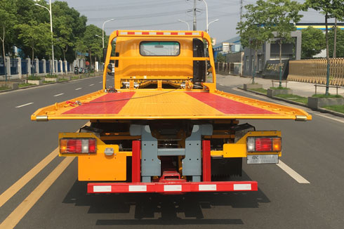 随底盘选装前部标牌、选装轮眉;整备质量为4950kg时托举质量为2155kg,整备质量为4700kg时托举质量为2405kg;该车用途为道路故障车辆、城市违章车辆托运;主要专用装置有平板机构、绞盘及托臂机构;侧防护材质为铝合金,连接方式:螺栓连接;后防护由车身专用装置替代,离地高度485mm;选装后部结构,后部尾板收起状态的水平长度为150mm或70mm;随底盘选装制动系统:装液压制动系统时,ABS及其控制器型号/生产企业对应关系为::APG3550500A/浙江亚太机电股份有限公司,CM4YL/广州瑞立科密汽车电子股份有限公司;装气压制动系统时,ABS及其控制器型号/生产企业对应关系为:CM4XL-4S/4M/广州瑞立科密汽车电子股份有限公司; |