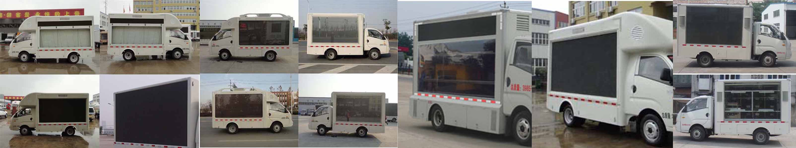 虹宇牌HYS5040XXCB5型宣传车整车的外形尺寸为5250×1900×2750(mm),车身颜色搭配LED显示屏的颜色再加上广告的炫彩,非常吸引人的眼球。箱体左右后三面都可选装LED显示屏,屏幕的清晰度随您挑选。该显示屏显示的色彩与播放源的色彩保持高度一致,显示出来的图像真实感极强。