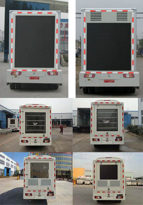 该车是用于广告宣传和科普宣传专用车辆。车辆左右两侧和后部可根据需求选装不同大小和形式的LED屛或广告灯箱。侧防护为裙边结构,后防护为裙边结构,最下端离地高450mm。ABS系统控制器型号:YF8,ABS系统控制器生产企业:武汉元丰汽车电控系统有限公司。 |