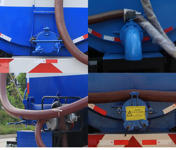 该车专用装置:罐体和泵,用途为吸排粪便;随底盘选装驾驶室,罐体有效容积12.0立方米;运输介质:液态污物,密度:800千克/立方米;罐体外形尺寸(长度×长轴×短轴)(mm):4660×2400×1600。ABS型号及生产厂家为:3631010-C2000/东科克诺尔商用车制动系统(十堰)有限公司,J ABS/焦作博瑞克控制技术有限公司。侧防护采用Q235B,螺栓连接。后防护采用Q235B,焊接连接。后防护截面高度尺寸150mm,截面宽度尺寸50mm,下边缘离地高度500mm。采用3950mm轴距底盘,整车长/前悬/后悬对应关系为(mm):7550/1250/2350,7585/1285/2350;选装排污口样式外观 |