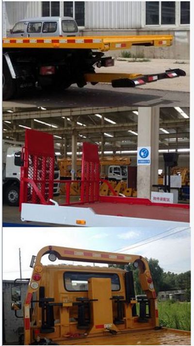 1、该车配备事故救援、排障的清障专用装置:主要包含副梁总成、平板总成、绞盘钢丝绳总成、托臂总成及清障专用托具等零部件;平板总成用于背载作业;绞盘钢丝绳总成用于背载、施救过程中拖拽作业,托臂、托具总成用于托牵作业,用于城市道路、郊区公路、高速公路以及机场、桥涵道路之安全清障; 2、托举质量为2300kg;该车后伸量为270mm; 3、侧防护与底盘纵梁间采用螺栓联接,材质为Q235,离地高为486mm;后部专用结构装置与防护装置的安装产生干涉,由专用作业装置替代后防,材质为Q345,采用铰轴与车辆链接,后部离地高度480mm; 4、发动机型号为F3.8NS6B170,净功率为122kW,排量3800ml; 5、ABS系统控制器型号/生产企业:ABS-E/威伯科汽车控制系统(中国)有限公司 6、安装带卫星定位功能的行驶记录仪; 7、选装窄体车厢时外观无变化,此时整车宽度为2400mm; 8、选装拉臂结构; |