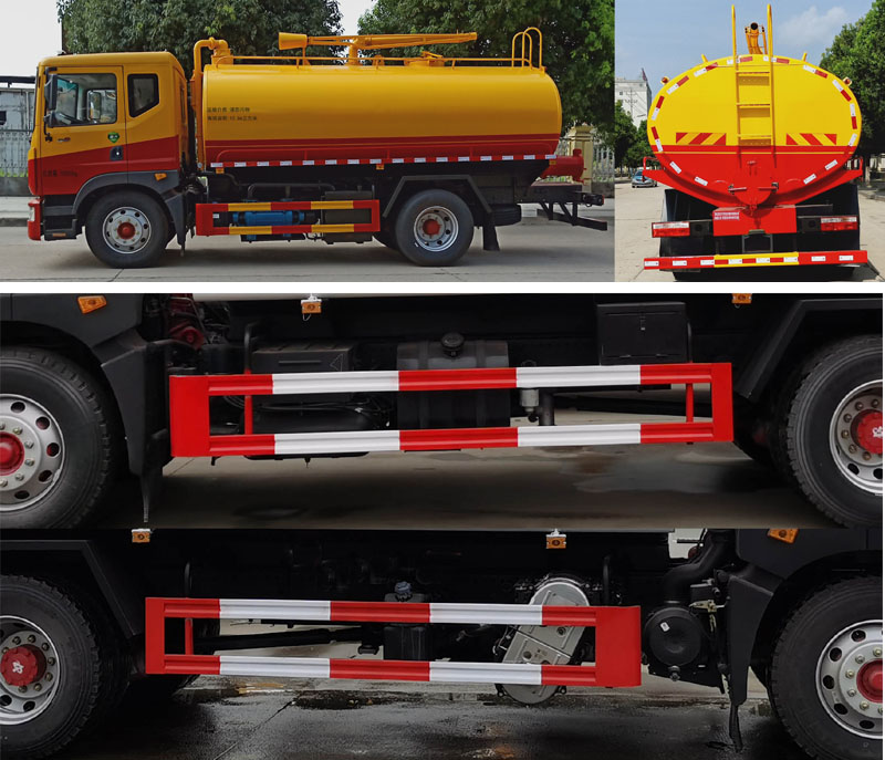 选装罐体顶部带吸粪支架,选装排气管位置;仅采用3950mm轴距;该车专用装置为罐体和吸污泵,主要用于抽排污水、粪便、油污、泥浆等各种流体;罐体外形尺寸(长×长轴×短轴)(mm):4650×2300×1600,罐体有效容积:12.86立方米;侧防护材质Q235,螺栓连接;后防护材质Q235,焊接连接,后防护截面高度尺寸120mm,截面宽度尺寸50mm,下边缘离地高度500mm;ABS系统生产厂家,型号:焦作博瑞克控制技术有限公司,J ABS. |