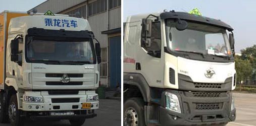 乘龙牌底盘,选用型号为LZ1250M5CBT改装,轴距达到1800+5600,1950+5450,1950+4550,1950+4150(mm),轴距长短用来改装易燃气体厢式运输车恰到好处,搭载ISD245 50 ISD270 50 YC6A240-50 YC6A270-50 YC6JA240-50 YC6J245-58型号的发动机,发动机对应马力为180 198 177 199 177 180(Kw),因为运输的介质含易燃易爆的性质,所以在底盘上必须加装前盘制动、ABS防抱死系统以及限速装置,保证车辆的安全运输。
