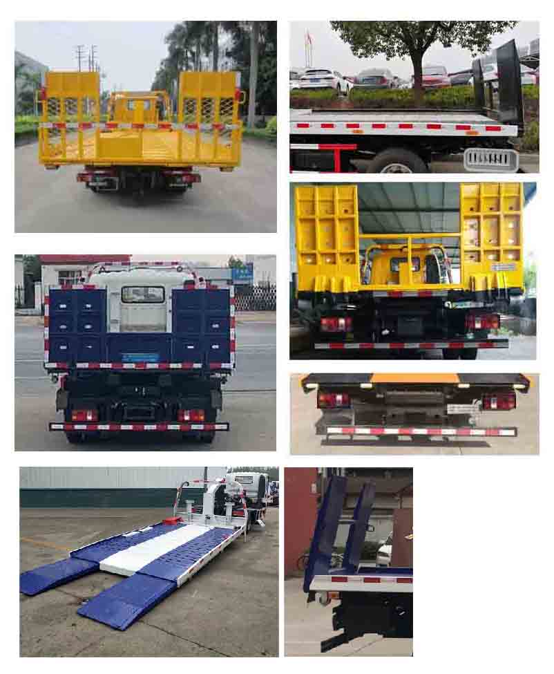 背载质量:565kg,500kg与驾驶室准乘人数2人,3人一一对应.此车为道路清障专用车辆,专用装置为托板,取力器,油缸,绞盘.防护材料:Q235A,连接方式:左右侧面及后下部防护均采用焊接连接,后下部防护断面尺寸(mm):100×50,后下部防护离地高度(mm):450.ABS系统型号为XH-KQ4S4M-E01,生产企业为广州市西合汽车电子装备有限公司;型号为CM4XL-4S/4M,生产企业为广州瑞立科密汽车电子股份有限公司.整车长/轴距对应关系为(mm):5995/3280,5515/2800.选装伸缩尾板及全落地图片. |