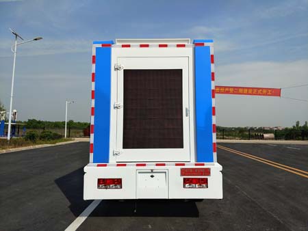 1、该车是用于广告宣传的专用车辆,专用装置为LED屏,车厢顶部封闭,不可开启。2、侧面及后下部为裙边结构,后部装置下沿离地高410mm。3、选装大尺寸LED屏时整车高3200mm,选装小尺寸LED屏时整车高2930mm。4、ABS系统控制器型号是CM4XL-4S/4M,ABS系统控制器生产企业是广州科密汽车电子控制技术股份有限公司。5、随底盘选装驾驶室;车厢左右两侧均可选装LED屏或LED屏加滚轴灯箱;两侧厢板选装封闭设计;选装侧门及通风口;车厢后部可选装滚轴灯箱、白板、LED屏加百叶窗、通风口;车厢尾部安装尾翼;尾门选装双开、侧开或上翻。车厢左右两侧均可选装升降装置和舞台板。 |