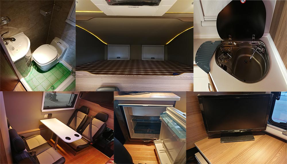凌扬牌福田欧马可国六C型旅居车采用底盘型号为BJ1088VEJEA-FK的福田牌底盘,排放标准为GB3847-2005,GB17691-2018国Ⅵ,轮胎规格为7.50R16LT 14PR,8.25R16LT 14PR,底盘搭载的发动机型号为F3.8NS6B156 D30TCIF1 CY4SK261 F2.8NS6B156,它具有动力足,耗能低,使用寿命长的优点。