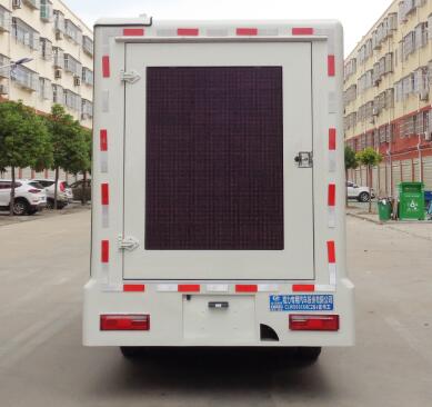 程力威牌CLW5031XXCZB6型宣传车整车的外形尺寸为5400×1900×2750(mm),车身颜色搭配LED显示屏的颜色再加上广告的炫彩,非常吸引人的眼球。箱体左右后三面都可选装LED显示屏,屏幕的清晰度随您挑选。该显示屏显示的色彩与播放源的色彩保持高度一致,显示出来的图像真实感极强。