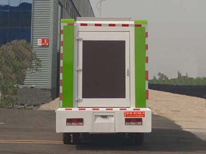 1、该车是用于广告宣传的专用车辆,专用装置为LED屏.2.侧面及后部为裙边结构,后部下沿离地高410mm;3.ABS型号:CM4XL-4S/4M,CM4YK,CM4YL;生产企业:广州瑞立科密汽车电子股份有限公司.4.随底盘选装驾驶室.5. 车厢左右两侧均可选装LED屏、LED屏加滚轴灯箱、玻璃灯箱;两侧厢板选装封闭设计;选装侧门及通风口,选装扩容装置;车厢后部可选装滚轴灯箱、白板、LED屏、LED屏加百叶窗、通风口;车厢尾部安装尾翼;尾门选装侧开或上翻;后部牌照灯处选装新款样式。车厢左右两侧均可选装升降装置和舞台板。 |