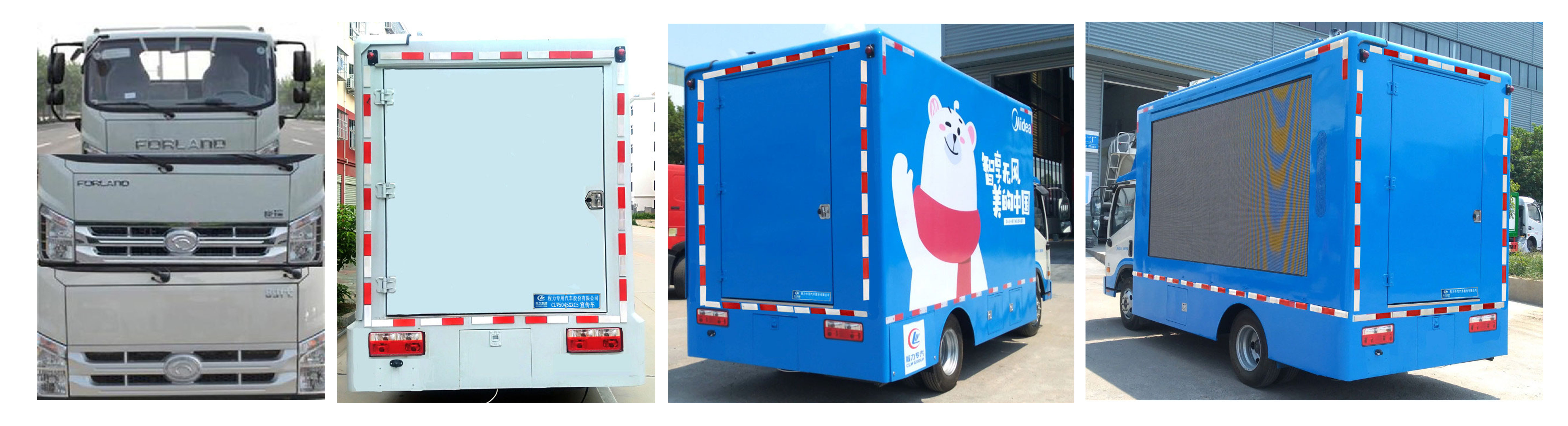 备注 | 该车是用于广告宣传的专用车辆;该车两侧为LED屏,侧面选装滚轴装置,LED单色屏;后部选装LED屏及通风口,选装左侧LED屏升降,选装左侧以及后部厢体结构;防护材料:Q235A碳钢,该车侧后包围装置已经符合车辆侧后防护尺寸标准要求,侧包围距地300mm,后包围距地350mm;选装前部LOGO.选装新风格后视镜.ABS系统控制方式是4S/4M,ABS系统控制器型号是CM4XL-4S/4M,ABS系统控制器生产企业是广州科密汽车电子控制技术股份有限公司 |