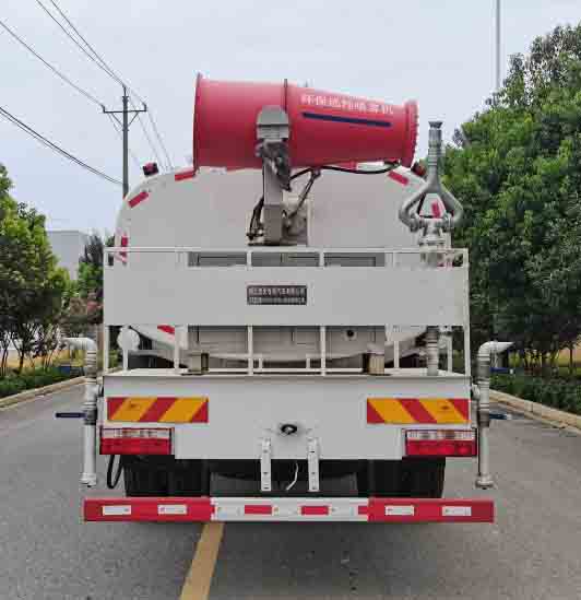 选装后雾炮装置。仅采用4500mm,3950mm轴距底盘,整车长/轴距/后悬对应关系(mm):8660/4500/2900,8550/4500/2740, 7760/3950/2550,7600/3950/2390;侧防护材料Q235,螺栓连接;后防护装置材料为Q235B,焊接连接,断面尺寸为:140×50(mm),离地高度为:450mm,ABS系统生产厂家/型号:焦作博瑞克控制技术有限公司/J ABS;该车专用装置主要是喷雾机,用于降低空气中的灰尘,雾霾等现象. |