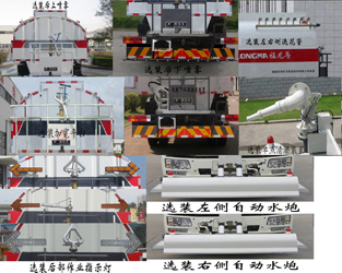 仅选用4500mm轴距;该车有两种配置:A(标准配置)、B(选装B型罐体);标配A型罐体外形长轴×短轴×长度(mm):2300×1350×4500;罐体有效容积:9.82立方米;选配B型罐体外形长轴×短轴×长度(mm):2400×1450×4150;罐体有效容积9.92 立方米;介质名称为:水;介质密度:1000千克/立方米。各配置整备质量(kg)/载质量(kg)/整车长度(mm)/后悬(mm)/罐体有效容积(立方米)对应关系如下:配置A:8450/9355/9200/2400/9.82;配置B:8350/9455/8950/2150/9.92。随底盘选装选装前围和灯具,选装宽体保险杠、脚踏板;侧防护及后部防护装置的材料材质:Q235A;连接方式为螺栓连接;后部防护装置的断面尺寸(宽×高)mm:60×230;后部防护装置的离地高度460mm。可选装:1、选装后上喷雾;2、选装后下喷雾; 3、选装左侧自动水炮;4、选装右侧自动水炮;5、选装后部作业指示灯; 6、选装单点清淤装置;7、选装加宽平台;8、选装下水道疏通装置;9选装左、右侧浇花管;10、自吸装置。以上10种选装配置引起的重量及整车尺寸变化可以忽略不计。该车装备有罐体、水泵、管道系统等,用于清洗路面,对路面喷洒水降尘等作用。ABS型号/生产厂家:CM4XL/长春瑞立科密汽车电子有限公司。 |