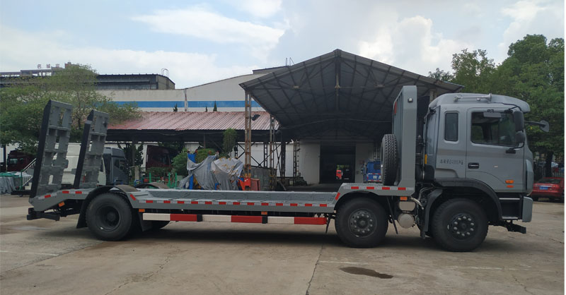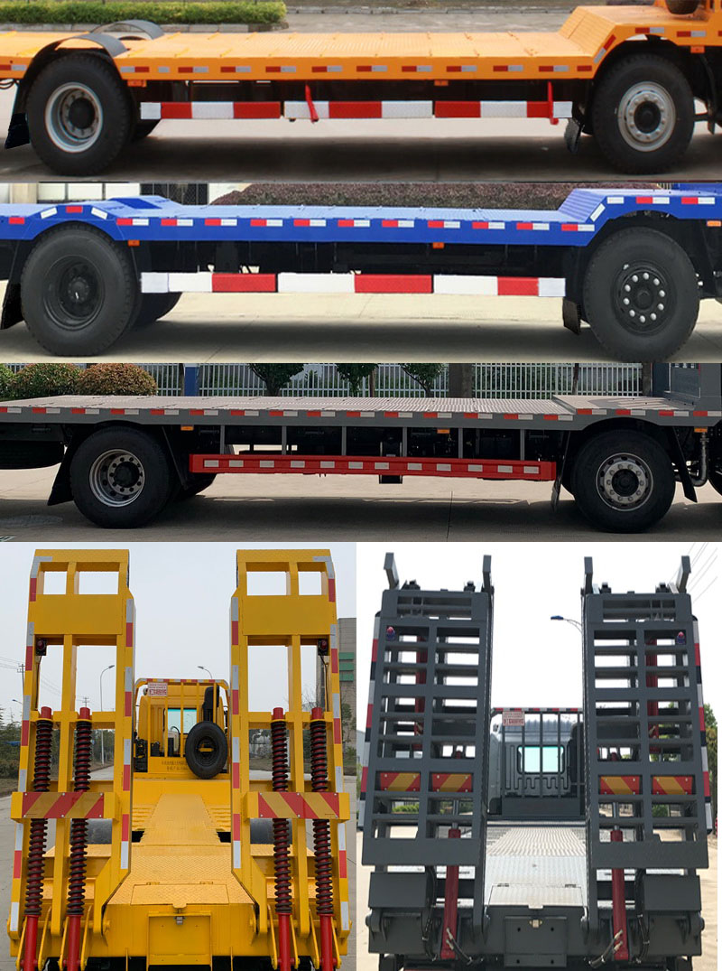整车的外形尺寸为10795×2550×3260(mm),外观造型简约大气,整车的上户吨位为12590(kg),总质量为24995(kg),上装平板采用板材厚度适中的花纹板,凹凸设计,防滑美观,承载也强。