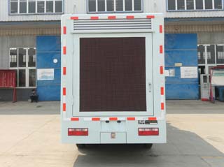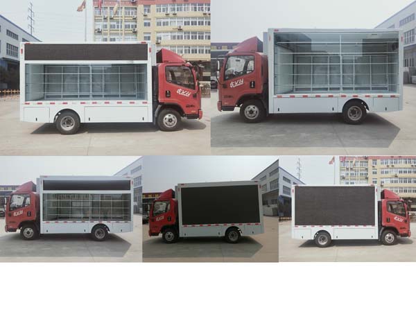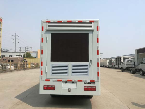 富园牌HFY5042XXCJ型宣传车整车的外形尺寸为5995×2030×3060(mm),车身颜色搭配LED显示屏的颜色再加上广告的炫彩,非常吸引人的眼球。箱体左右后三面都可选装LED显示屏,屏幕的清晰度随您挑选。该显示屏显示的色彩与播放源的色彩保持高度一致,显示出来的图像真实感极强。