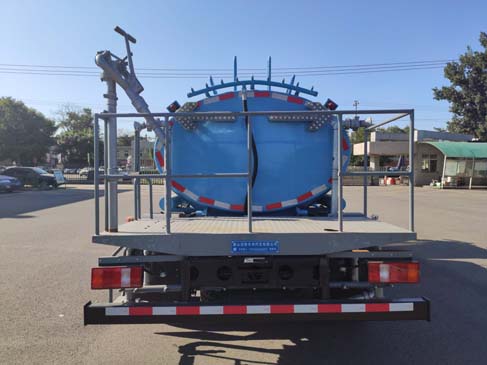 罐体有效容积4.5立方米.介质:水.罐体长2800mm,长轴1900mm,短轴1200mm,侧后防材质:Q235.侧防护支撑座与副梁焊接,侧防护与支撑座螺栓连接,后防护与车架螺栓联接,后防护断面尺寸:120mm×80mm,后防护离地高度:450mm.ABS系统型号为XH-KQ4S4M-E01,生产企业为广州市西合汽车电子装备有限公司;型号为CM4XL-4S/4M,生产企业为广州瑞立科密汽车电子股份有限公司.选装驾驶室,选装后视镜;选装限速装置,限速80km/h,同时选装前置排气系统,选装前盘式制动器;选装射雾器,选装后部上、下喷雾装置、侧面自吸装置和软管箱,选装后部专用装置的布局、选装后平台、后水管路系统、罐体爬梯、挡泥板、后示廓灯安装架、自吸系统、左右软管箱等 |