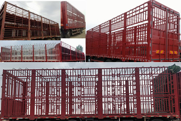 东风牌东风天龙前四后八国五仓栅式畜禽运输车的外形尺寸为11980×2500,2550×3900,3990(mm),货箱尺寸为9400,9600×2400,2450×(mm),厢体采用优质钢板制作而成,它重量轻,承载能力大大提高。