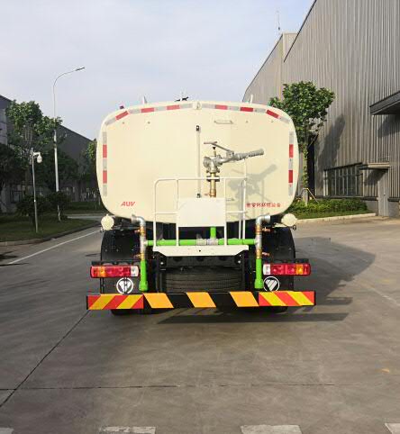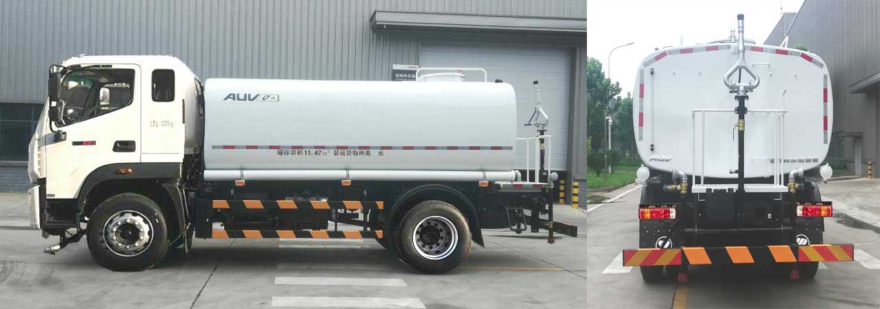 该该车装有水罐,水路系统,清洗工作装置,作业平台,控制系统,用于清洗作业.罐体有效容积11.47立方米,罐体外形尺寸(长轴×短轴×长度)(mm):2400×1450×4000.介质名称:水,介质密度:1000千克/立方米.侧防护及后防护材料均为Q235A,连接方式为螺栓联接,后防护栏断面尺寸为150×50mm,离地高度为450mm;ABS控制器型号为CM4XL-4S/4M,ABS控制器生产企业为广州瑞立科密汽车电子股份有限公司;选装前自动水炮(前伸600mm),选装前对冲(前伸420mm),选装前鸭嘴(前伸220mm),选装后喷雾装置,选装后指示灯.选装后置卷盘,选装顶部浇灌装置,选装不带工具箱(左右),选装罐体顶端扶手状态,选装后部造型,选装ETC. |