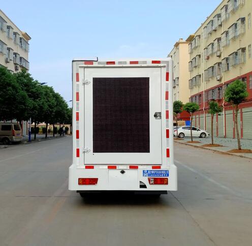 程力威牌CLW5036XXCB6型宣传车整车的外形尺寸为5100×1850×2700(mm),车身颜色搭配LED显示屏的颜色再加上广告的炫彩,非常吸引人的眼球。箱体左右后三面都可选装LED显示屏,屏幕的清晰度随您挑选。该显示屏显示的色彩与播放源的色彩保持高度一致,显示出来的图像真实感极强。