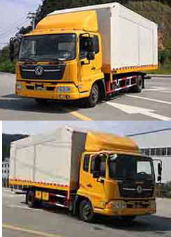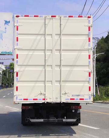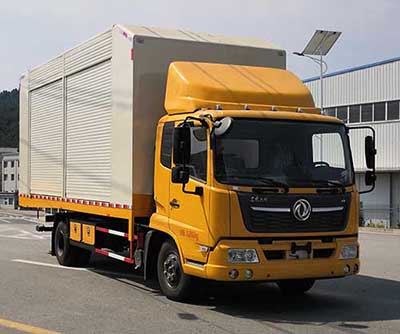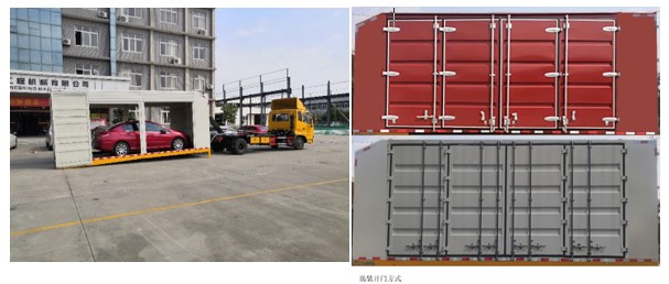 随底盘选装驾驶室.仅选4500 mm轴距.选装开门方式,选装不同高度厢体,对应关系(高度mm/整备质量kg/托举质量kg):3900/8300/1505; 3500/7800/2005; 3300/7600/2205.侧防护:材质Q235,螺栓连接,后防护以专用装置代替,离地高度490mm.ABS型号:3631010-C2000;生产厂家:东科克诺尔商用车制动系统(十堰)有限公司.厢体顶部封闭不可开启. |