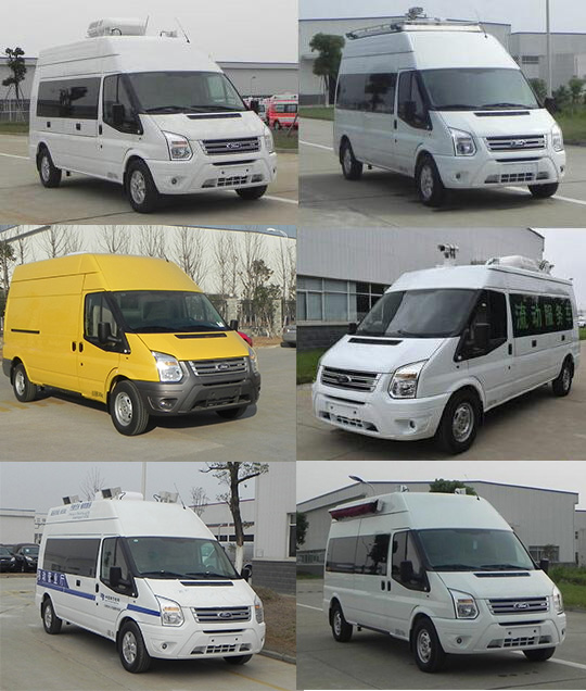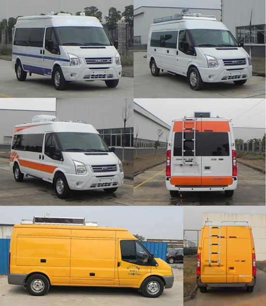 随底盘选装中顶,中顶VIN前八位(LJXBMDJD)中顶与高顶选装件相同,随底盘选装普通款前大灯、号牌板支架、车身同色后视镜、车身同色门把手及钥匙孔。车顶选装设备平台、换气扇、空调、升降照明灯、摄像头、喇叭、场地照明灯,选装尾门爬梯,车顶一侧或两侧选装遮阳蓬,LED显示屏,车身两侧可选装上掀窗。不装车顶设备时车高2545(高顶)/2315(中顶),选装车顶喇叭、换气扇时2670(高顶)/2500(中顶),选装车顶设备平台高2740(高顶)/2510(中顶),选装薄型空调车高2780(高顶)/2545(中顶),选装厚型空调车高2900(高顶)/2670(中顶),不带摄像头的升降照明灯高2880(高顶)/2650(中顶),选装带摄像头的升降照明灯高3070(高顶)/2840(中顶)。A.配备设备柜、绕线盘、工具箱等专用装置,对应装备质量为3050kg;B.配备设备柜、发电机、空气压缩机等专用装置,对应装备质量为3500kg。当整备质量为3500kg时,对应载客数为2或3人。ABS系统控制器型号: 6C11 2M110 A*或CC11 2C405 A*,生产厂家:博世汽车部件(苏州)有限公司。发动机最大净功率为101kw。 |