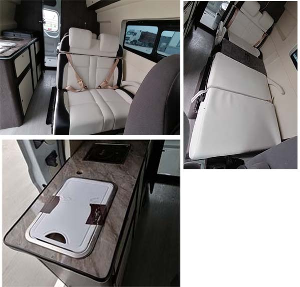 备注 | 该车配备照明、睡具、桌椅、厨具、卫生等生活设施和娱乐设施等专用装置;选装内部装饰布局,随底盘选装轮辋样式,低顶,前脸,侧拉窗,后视镜,侧拉门踏板,尾部标识,车顶选装行李架,太阳能板,空调,换气扇,卫星天线,选装改装后单侧或双侧拉门踏板,侧拉门可选装电动踏步.车身两侧后侧窗选装盲窗,乘坐区两侧车窗可选装粘贴式推拉窗,车身选装遮阳蓬,外置淋浴,注水口,外接电源充电接口,输出插座以及行李舱门,选装车辆尾门爬梯,自行车架,选装车身四周大包围.车辆后部选装自行车架(整车长5630mm);选装爬梯(整车长5460mm),顶部选装空调(整车高2680mm)、选装行李架(整车高2530)选装排风天窗(整车高2450mm),ABS系统控制器型号:EV5051,生产厂:博世汽车部件(苏州)有限公司,发动机最大净功率:147kW. |