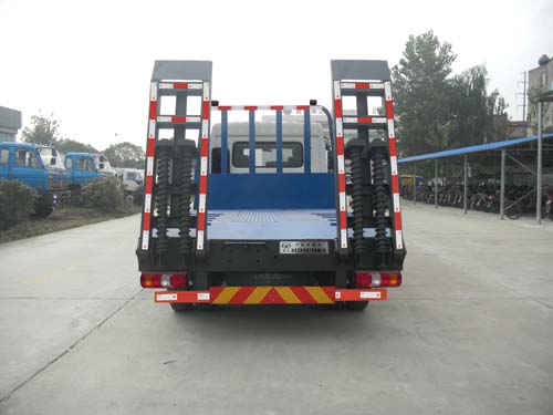 华通牌HCQ5186TPBCQ5型平板运输车在外观上稳重大气,整车外形尺寸为8650,9000×2550×3100(mm),罐体采用优质碳钢板材一次卷压成型的制造工艺,电脑专控自动成型封头,内外满焊对接,完全做到无缝成型。罐体可分仓,仓内可分室,中间隔板下端有通孔,每仓中间焊有分仓加强波隔板,以减轻车辆行驶时罐体内油料的冲击和提高罐体的刚度。整车还配有油气回收阀,防溢流探杆,流量计,呼吸阀,海底阀灭火器等等安全部件,有效保障运油的安全。
