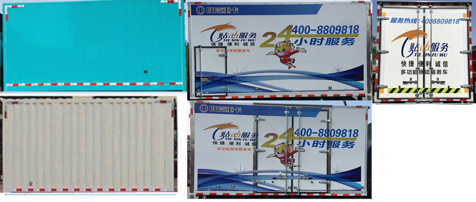 陕汽牌陕汽轩德X9国五蓝牌流动服务车在外观时尚霸气造型圆润流畅,可有效降低风阻系数,整车外形尺寸为5995×2100,2200,2300×3050,3150(mm),厢体采用玻璃钢复合车身结构及阻燃保温材料,做工精细;房厢内部配置齐全。