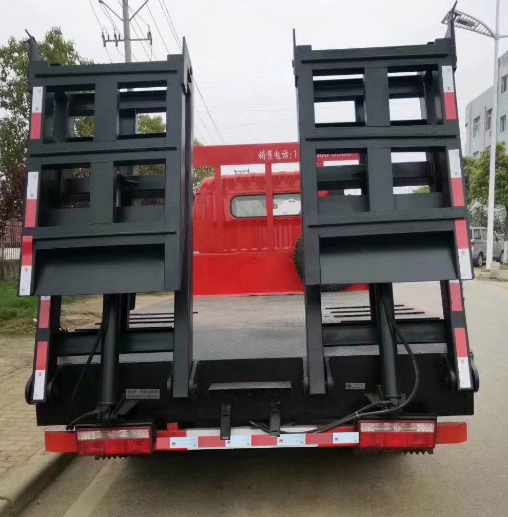 东风牌EQ5080TPB8GDFAC型平板运输车在外观上稳重大气,整车外形尺寸为5995×2310×2700(mm),罐体采用优质碳钢板材一次卷压成型的制造工艺,电脑专控自动成型封头,内外满焊对接,完全做到无缝成型。罐体可分仓,仓内可分室,中间隔板下端有通孔,每仓中间焊有分仓加强波隔板,以减轻车辆行驶时罐体内油料的冲击和提高罐体的刚度。整车还配有油气回收阀,防溢流探杆,流量计,呼吸阀,海底阀灭火器等等安全部件,有效保障运油的安全。