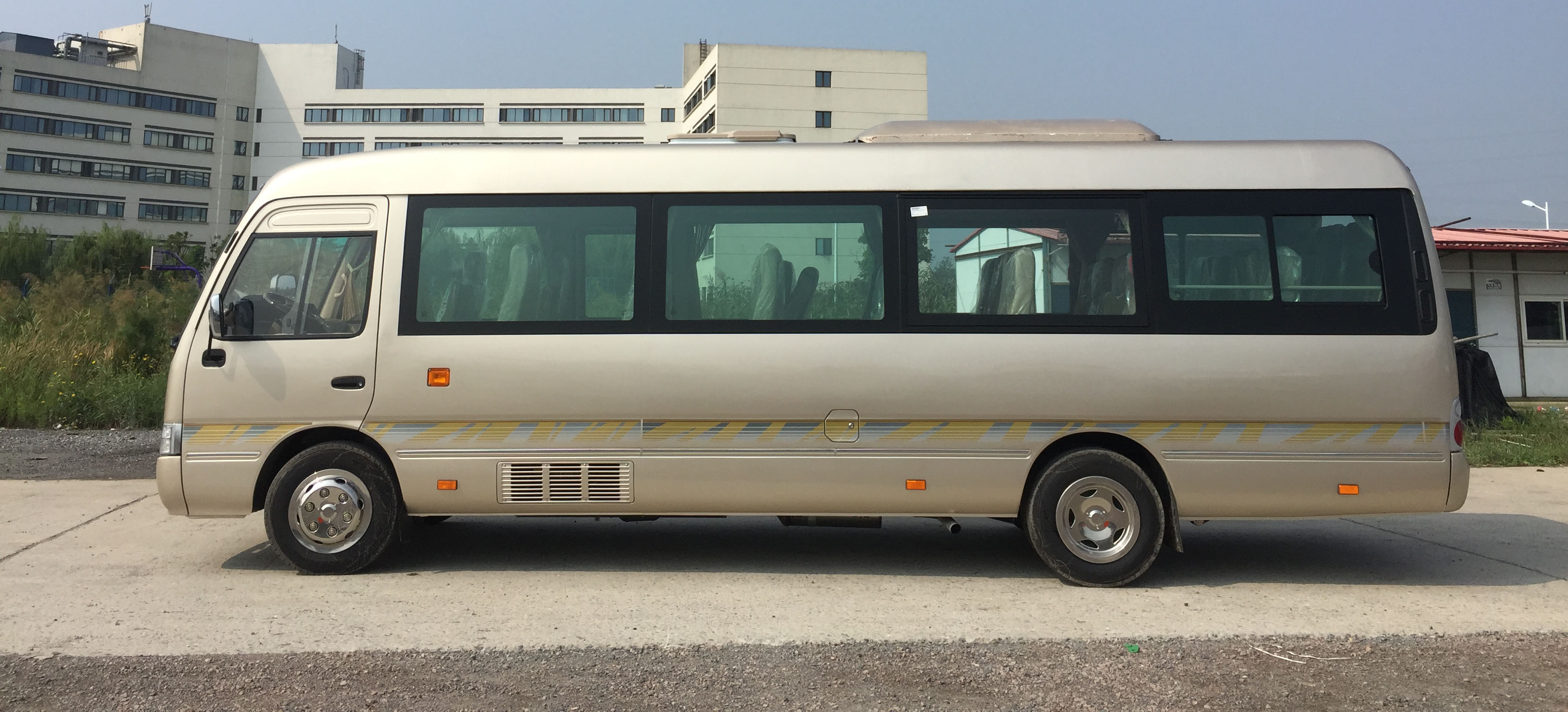 | 备注 | 1.可选装中折门、另一款前围板;2.选装后围带尾翼和牌照灯装饰板及另一款后围板;3.选装下视镜;4.选装顶置空调或鲨鱼鳍时车高为2820mm,选装内置空调或供热时车高为2700mm;5.空气调节装置:选装空调时整备质量为4990kg,供热时整备质量为4850kg;6.安全出口数量5个(1个乘客门+3个应急窗+1个安全顶窗)。 | ||||||||||