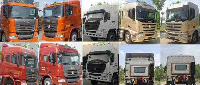 | 备注 | 选装平顶驾驶室(高顶驾驶室高度分别为3650mm和3550mm,平顶驾驶室高度为3130mm)及不同规格导流罩(装导流罩后的高度有3730mm,3790mm,3905mm,3995mm四种).当整备质量8805kg时,准拖挂总重量40000kg,鞍载质量16065kg;当整备质量9350kg时,准拖挂总重量39455kg,鞍载质量15520kg.最高车速为80km/h. | ||||||||||