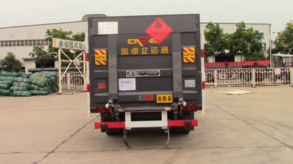 | 备注 | 该车为危险品运输车.选装驾驶室.随底盘选装驾驶室前面罩,前保险杆,前组合灯具,前雾灯.后部选装不同结构的液压升降尾板,液压升降尾板收起水平长度300mm.选装限速装置,限速80km/h.YC4FA115-50对应主减速比4.875. CY4BK551对应主减速比5.857。 | ||||||||||