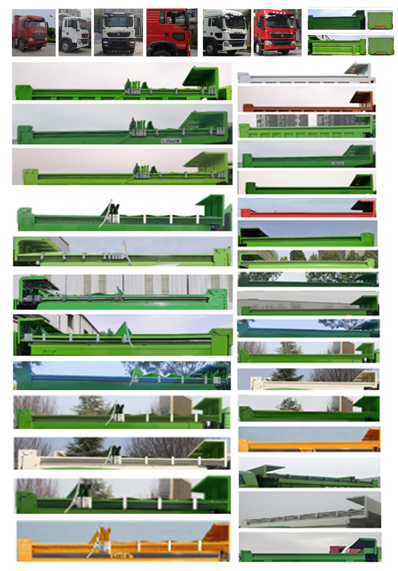 | 备注 | 货厢自卸方式为后卸。选装普通驾驶室,外形尺寸高为3450mm;选装高顶驾驶室,外形尺寸高为3800mm。选装遮阳罩,选装后风窗,选装保险杠,选装后视镜。选装货箱栏板外观,选装不同货箱结构。选装带折叠式篷布货箱,选装带环保盖货箱。车长、前后悬和轴距参数对应关系为:9580=1500+1950+3225+1350+15550;9780=1500+1950+3225+1350+1755;9930=1500+1950+3225+1350+1905;9630=1500+1800+3225+1350+1755;9780=1500+1800+3225+1350+1905。安装带卫星定位功能的行驶记录仪。 | ||||||||||